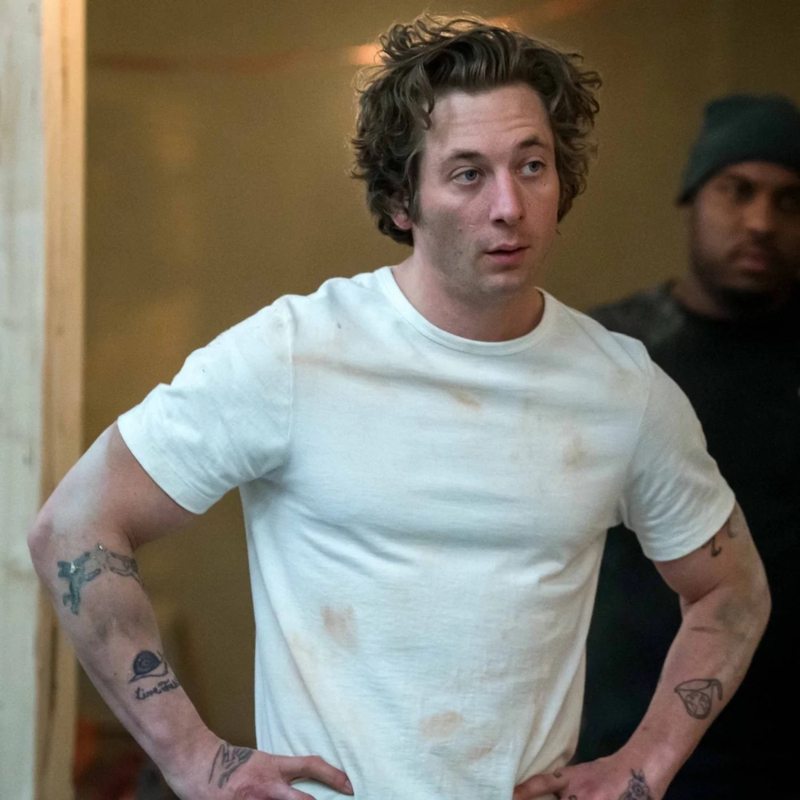Het iconische witte T-shirt dat Jeremy Allen White droeg in zijn rol als Carmy in The Bear. Met zijn klassieke pasvorm en ronde hals heeft dit T-shirt een eenvoudige maar stijlvolle uitstraling, perfect voor elke gelegenheid.