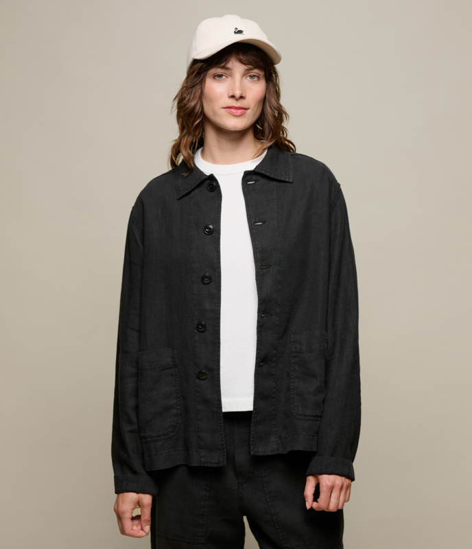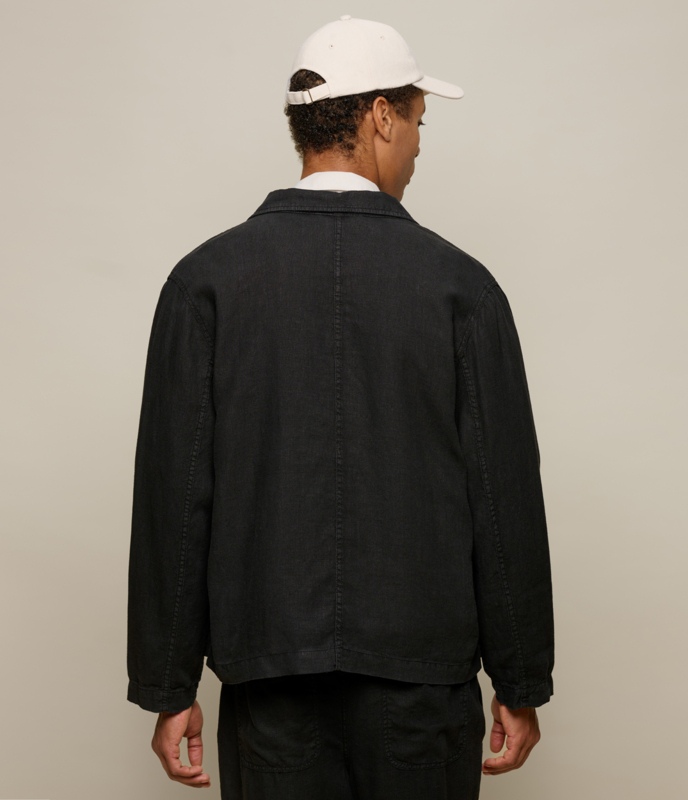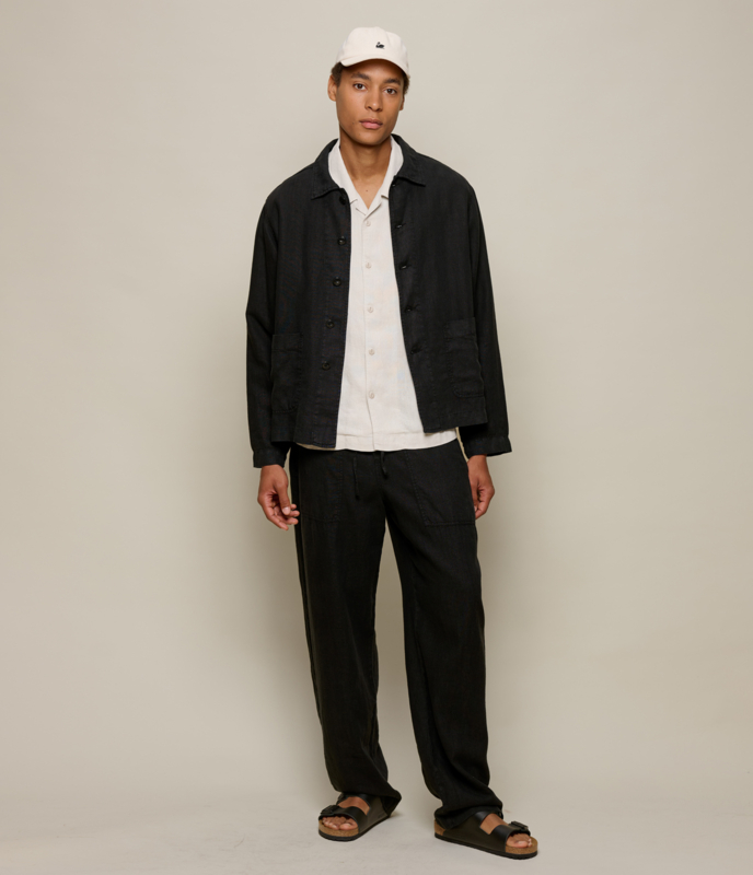 Geïnspireerd op het klassieke linnen werkjasje gemaakt van 100% gewassen linnen. De stof is vanwege de wassing soepel en draagt heerlijk bij warme dagen maar ook prima als overshirt. Het geeft een Japanse minimalistische look. Het jasje is vaal vanwege de garment-wassing.