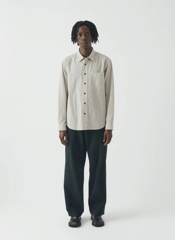 Deze Rory-broek is gemaakt van micro-houndstooth katoen dat is overgeverfd. De broek heeft rechte pijpen en is afgewerkt met schuine zijzakken en opgestikte achterzakken. Kan los gedragen worden of gecombineerd met ons katoenen double-breasted jack.