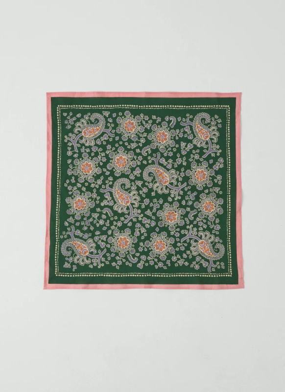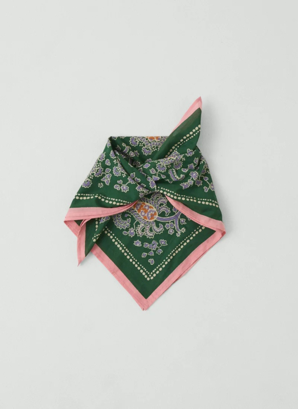 Katoenen bandana, handgezeefdrukt in India met een paisley-patroon geïnspireerd op Provençaalse textiel.