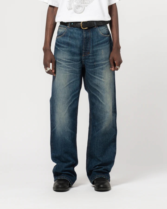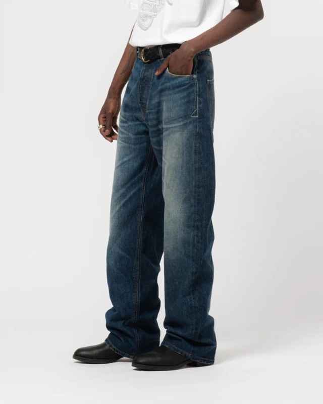 Ja hier is ie, de Fit 53 Denim, een tijdloos model met wijde pijpen, geïnspireerd op de klassieke kleermakerij uit de jaren 50. Deze jeans is gemaakt van 100% Japanse denim met een robuuste zelfkant en heeft authentieke kettingstiksels langs de binnenkant van de pijpen en de zoom voor duurzaamheid en een vintage uitstraling. De wassing voor een geleefde look.