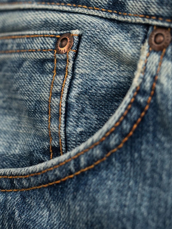 De stof voelt glad aan, ondanks de hoeveelheid bewerking, en de verschuiving in blauwtinten wordt benadrukt door scherpe vervagingen en slijtageplekken. De nagebootste slijtageplekken zorgen voor een onmiskenbaar authentieke, driedimensionale, gedragen look, zonder de aandacht af te leiden van de afwerking en textuur. Donkere tinten zijn minder prominent aanwezig en laten de aandacht juist uitgaan naar opvallende variaties van koelblauw. De koperkleurige accenten voegen wat warmte toe aan de verder kille indigotinten, en het zout-en-peper-effect zorgt voor een uniforme uitstraling. Dit alles resulteert in een werkelijk prachtige jeans.