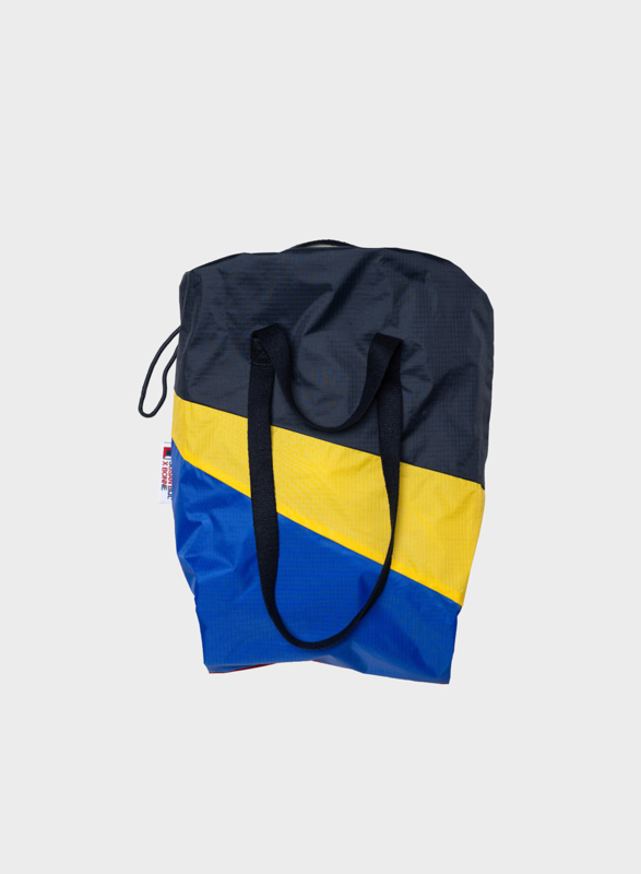 SUSAN BIJL X BONNE maakt deel uit van The Sailor, de BONNE FW26-collectie geïnspireerd op de kleuren en vormen van het nautische alfabet; de seinvlaggen die zeevaarders eeuwenlang de weg hebben gewezen. De samenwerking bestaat uit The New Shopping Bag Large en The New Trash Bag Medium.