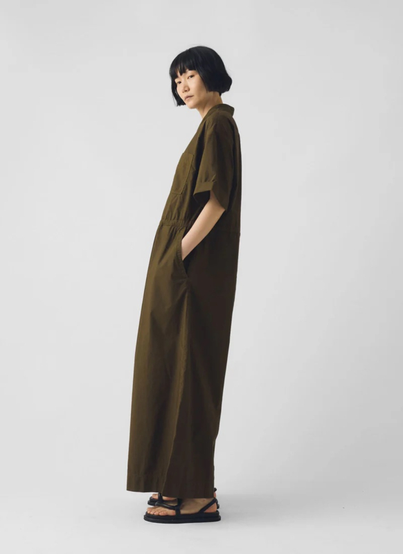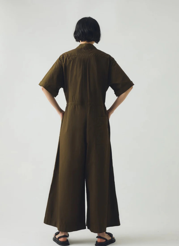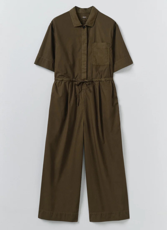 Toast Indigo Wide Leg Cotton Poplin Jumpsuit Bronze Green