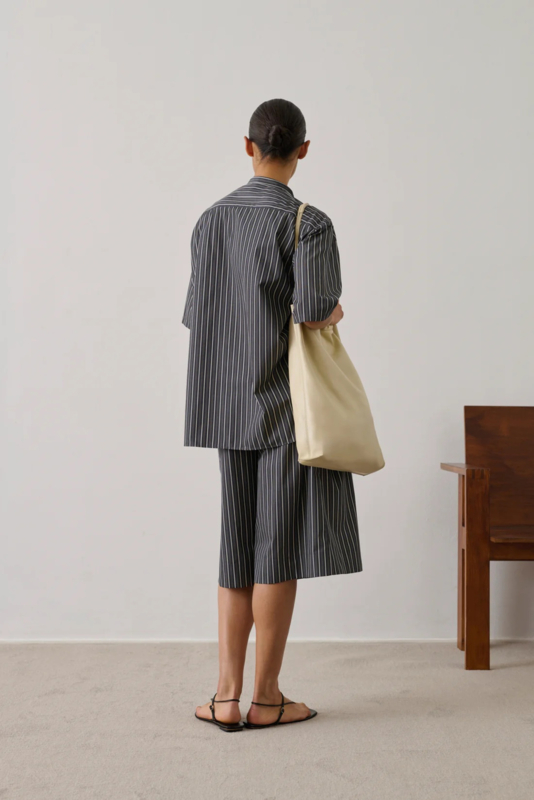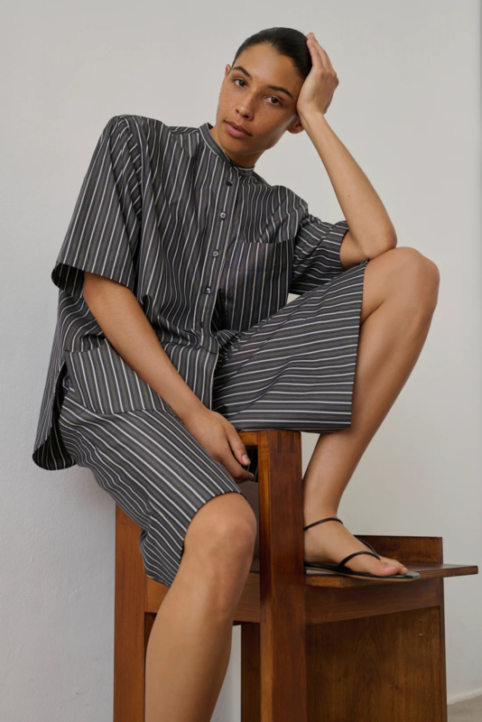 Zomers shirt in overhemdstijl. Mandarijnkraagje en borstzak. Mooi samen met de Henna Bremuda van Soeur.